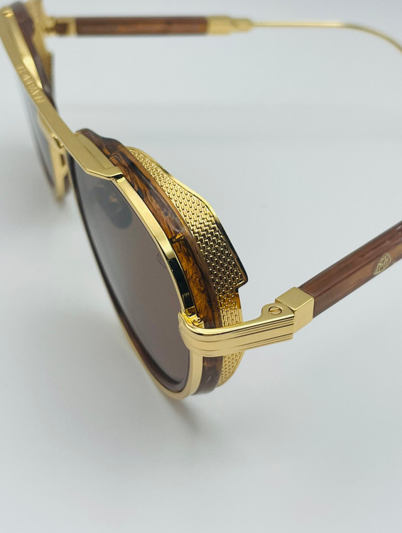 فریم قهوه ای بغل طلایی عدسی قهوه ای